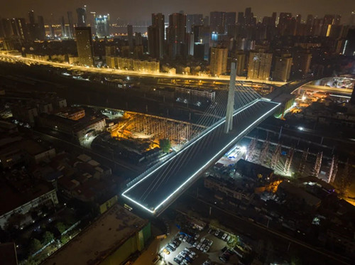 為最低限度減少對鐵路運營的影響,項目提前協(xié)調(diào)鐵路部門做好調(diào)配,確保在轉(zhuǎn)體施工期間沒有列車通過,通過現(xiàn)場技術(shù)、作業(yè)、測量各崗位人員密切聯(lián)動,最終使這一安全風險高、技術(shù)難度大的施工項目,成功實現(xiàn)零誤差。同時,在市城建局和江岸區(qū)政府的大力支持下,項目對橋梁轉(zhuǎn)體范圍內(nèi)的140名居民進行了臨時安全轉(zhuǎn)移,確保了上跨鐵路橋安全順利轉(zhuǎn)體完成。